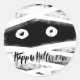 Le design présente notre personnage de monstre de momie à dessin blanc et à motif fantaisiste, créant un design amusant et décalé d'autocollant à thème halloween de momie. "Happy Halloween" s'affiche dans un script de brosse noire. Toutes les illustrations contenues dans ce modèle d'autocollant à thème d'halloween momie sont dessinées à la main par Moodthology.