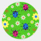 Des coccinelles grincheuses se baladent au milieu des fleurs du jardin.