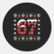 Sticker Rond Funny 67 Buffalo Plaid Christmas Snow Ugly Sweater