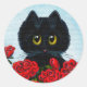 Sticker Rond Funny Black Cat Art Rose Créationarts