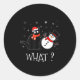 Sticker Rond Funny Black Cat Pushing Snowman Christmas Winter C