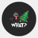 Sticker Rond Funny Black Cat Xmas Pushing Christmas Tree Over C