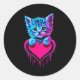 Sticker Rond Funny Blacklight Glitch Art Cute Cat Kitten Valent