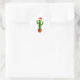 Sticker Rond Funny Cactus Santa Hat Xmas Tree Lights Merry Chri