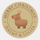 Envoyez ces drôles de chevaliers de Noël de rennes de capybara avec un cadeau de vacances à votre ami, membre de votre famille ou à un proche. Le design de l'autocollant d'or présente une illustration de capybara au centre avec "Joyeux Noël et nom" personnalisé en couleur rouge, parfait pour les amateurs de capybara. L'illustration capybara est une oeuvre d'art originale dessinée à la main par artbybiyan.