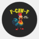 Sticker Rond Funny Chicken F-caw-f What The Heli Rooster Humor