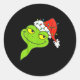 Sticker Rond Funny Christmas Frog Wearing Santa Hat And Lights