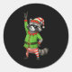 Sticker Rond Funny Christmas Raccoon Dressed As Elf With Sungle