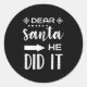 Sticker Rond Funny Christmas Santa Meme Dear Santa He Did It