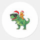 Sticker Rond Funny Christmas T Rex Dinosaur Gingerbread Lights