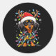 Sticker Rond Funny Dachshund Christmas Lights Santa Hat Xmas