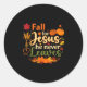 Sticker Rond Funny Fall For Jesus He Never Leaves Autumn Christ