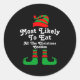 Sticker Rond Funny Family Christmas Most Likely To Elf