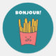 Sticker Rond Funny Food Pun Humour French Fries Bonjour