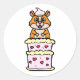 Sticker Rond Funny Hamster sautant d'un gâteau