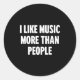 Sticker Rond Funny I Like Music More Than People For Introverts