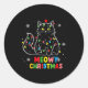 Sticker Rond Funny Meowy Christmas Xmas Lights Black Cat Pajama