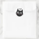 Des autocollants amusants en Merci avec un chat noir comique avec de grands yeux ronds et des joues roses roses. Le mot "Merci" est placé au-dessus de la tête des chats dans une jolie police noire.