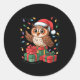 Sticker Rond Funny Owl Santa Hat Animals Lovers Ugly Christmas