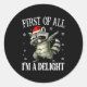 Sticker Rond Funny Raccoon First Of All I'm A Delight Merry Chr