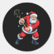 Sticker Rond Funny Santa Playing Lacrosse Holiday Christmas Xma