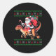 Sticker Rond Funny Santa Riding Dinosaur Animal Ugly Christmas