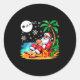 Sticker Rond Funny Santa Sungles Drinking Coconut On Beach Chri