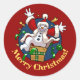 Sticker Rond Funny Snowman Merry Christmas Surprise Cartoon