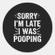 Sticker Rond Funny Sorry I'm Late I Was Ong