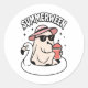 Sticker Rond Funny Summerween rose Fantôme Flottant Au Flamant