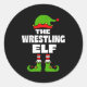 Sticker Rond Funny Wrestling Elf Christmas Wrestler Mens Womens