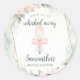 Autocollant Rond Classique Futur Événement de Remise des Clefs Fleurs Roses pour la Mariée