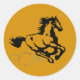 Illustration fantastique d'un cheval galopant. Ce cheval est de couleur marron châtaigne doré avec une crinière et une queue noires. On peut le voir galoper rapidement avec des nuages de poussière qui sont secoués par ses talons. Sa crinière et sa queue volent dans la brise. Idéal pour les amateurs de chevaux.