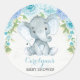 Sticker Rond Garçon Elephant bleu Rose Peony Baby shower Faveur