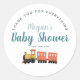 Ce baby shower mignon et moderne vous remercie de favoriser le design autocollant présente une illustration colorée du train, et peut être personnalisé avec le nom et la date de la fête des parents/mères. L'ajout parfait sur le thème du voyage à votre baby shower garçons.