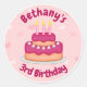 Sticker Rond Gâteau d'anniversaire rose mignon 3 bougies pour l