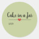 Autocollant moderne "gâteau dans un pot" avec une police de caractères noir sur un arrière - plan vert sage agrémenté d'un coeur rouge mignon. Customiser du texte.