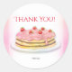 Sticker Rond Gâteau de Fraise Rose Faveur de Fête d'Anniversair