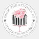 Joli gâteau rayé floral inspiré de la France avec "de la cuisine de" , étiquettes rondes pour pâtisseries, avec une typographie classique décorative à visage ouvert. Ajoutez simplement votre nom. Un style accrocheur pour vos pâtisseries. Vous pouvez utiliser l'outil de conception simple pour changer le style et la couleur des polices.