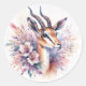This sticker set features a feminine watercolor design of a regal gazelle surrounded by soft floral blossoms and pastel foliage. With expressive eyes, beautifully curved horns, and painterly detail in shades of lavender, peach, and blush rose/pink, this antelope design radiates both strength and serenity. Perfect for nature lovers, wildlife art fans, and those who appreciate floral aesthetics.