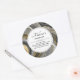 Autocollants professionnels personnalisés. Conçu avec un design abstrait avec un motif minéral géologique agate. L'or, le gris, le blanc et le noir tourbillonnent ensemble formant d'élégantes vagues de couleur. Parfait pour transmettre un air de classe et d'élégance. Un cercle blanc avec une fine bordure grise superposée avec votre texte à l'intérieur.
