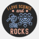 Sticker Rond Géologie Anniversaire, I Love Science and Rocks