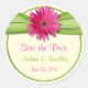 Sticker Rond Gerbera rose Daisy Mariage vert Enregistrer la dat