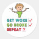 Get Woke Go Broke est un moyen amusant de faire passer le message. Un personnage exaspéré au-dessus des énoncés - Get Woke, Go Broke et Repeat avec un point d'interrogation dans la case finale. Vas-tu vraiment continuer à faire ça ?