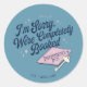 Add some Stars Hollow charm to your day with this whimsical Gilmore Girls design featuring the phrase “I’m sorry, we’re completely booked.” Styled in elegant script, the design includes a vintage room key tag labeled “Independence Inn,” Lorelai’s beloved workplace. Accented with sparkling pink stars, this fun literary pun is perfect for fans of the show and book lovers alike.