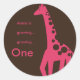 Sticker Rond Giraffe Brown et rose Anniversaire