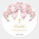 Sticker Rond Girl Confirmation Pink Bow Faux Gold Cross Floral