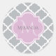 Sticker Rond Girl Grey Quatrefoil Lavender Monogramme et nom