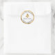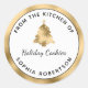 Bordure d'or et Arbre de Noël "De la cuisine de" Sticker de produit rond classique personnalisé pour les réserves faites maison ou les produits de boulangerie... Faites-vous des pâtisseries ou des confitures maison pour des cadeaux de vacances cette année ? Notre autocollant cadeau de vacances/étiquette affiche une élégante bordure en feuille d'or autour du texte : "De la cuisine de" et "Votre nom." Vous pouvez facilement changer votre nom et le nom du produit sur le modèle de personnalisation.