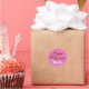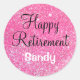 Glam personnalisé Happy Retirement classique rond autocollant avec une parties scintillant rose chaud brillant arrière - plan et écriture noir et blanc. Vous pouvez facilement ajouter le nom de votre choix et changer la couleur et la police du nom en utilisant l'option personnaliser !